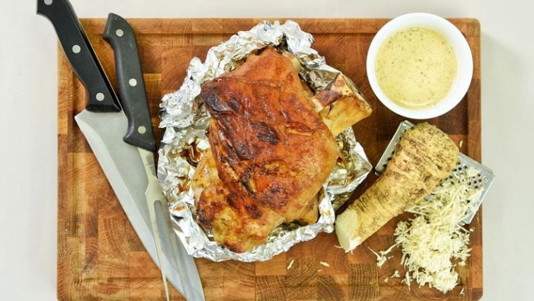 Vepřové koleno na pivě s hořčičným dipem a křenem vás nadchne