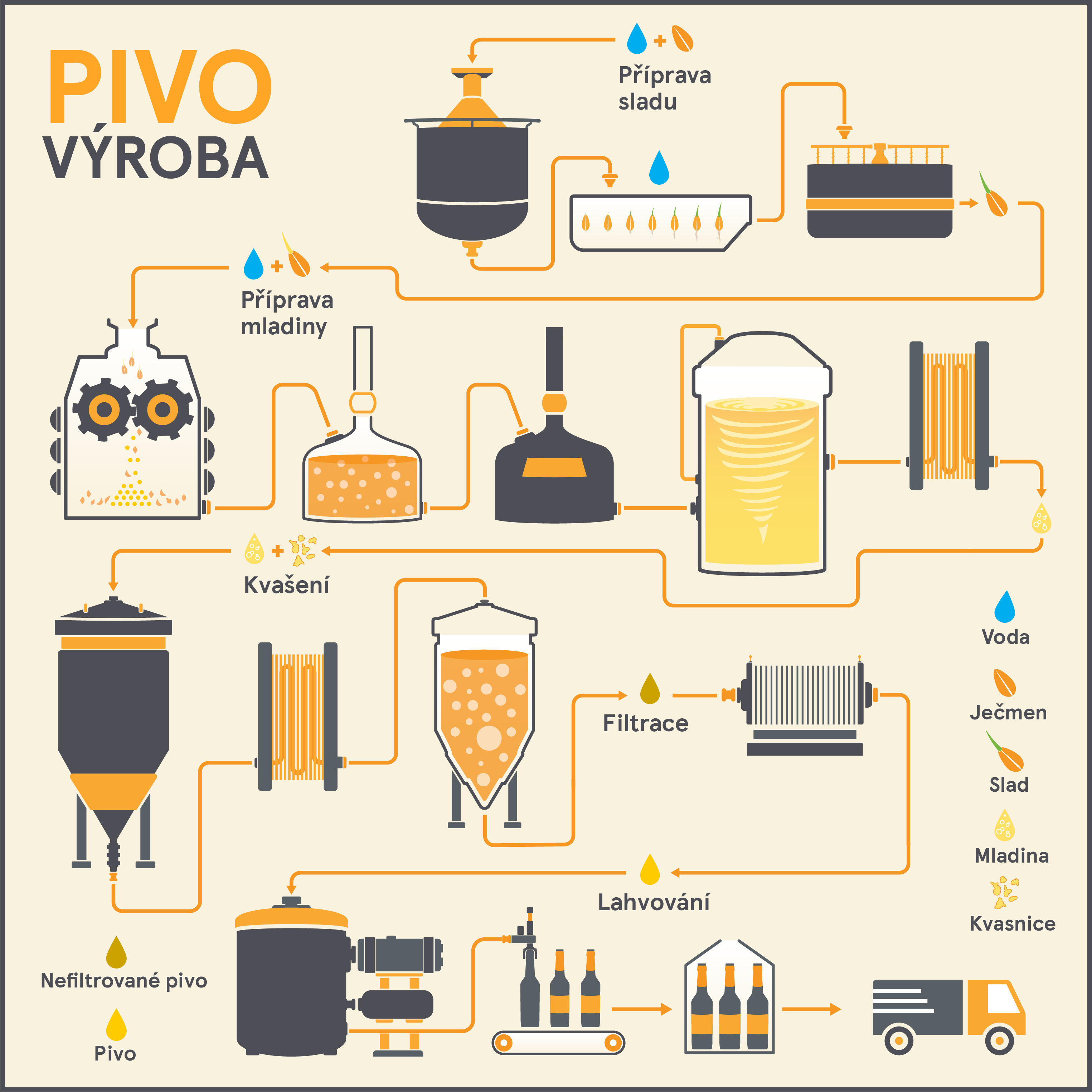 Pivo je kvašený, slabě alkoholický nápoj vyráběný z obilného sladu, vody a chmele pomocí pivovarských kvasinek. Tak zní suchá definice. Zlatavý mok se pije po celém světě a jeho druhů je přes 40 tisíc.