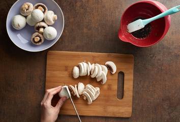 Očištěné houby nakrájíme na asi centimetr silné plátky.