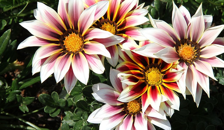 Gazánie - tyto královny slunce otevírají své pestrobarevné květiny pouze během slunečných dnů. Když je zataženo, ani se neunavují rozkvést.