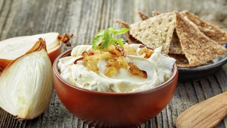 *Skvělou kombinací k jáhlovému chlebu je tvarohová pomazánka s karamelizovanou cibulkou