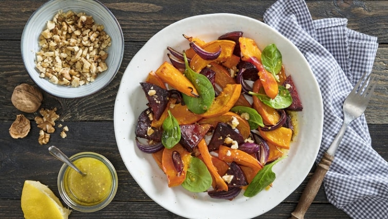 Teplý salát z dýně a červené řepy