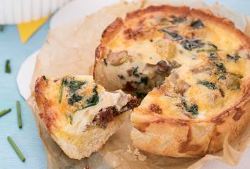 Upečené košíčky nejprve naplňte zeleninou a pak vaječnou směsí.