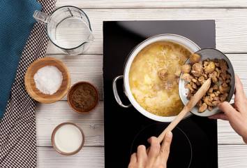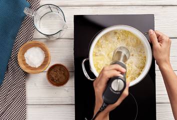 Ke změklým bramborám přidáme kaštany a smetanu.