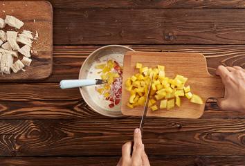 Nakrájíme cibulku a papriku na kostičky.