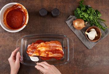 Žebra omyjeme, důkladně osušíme a odstraníme z nich membránu. Potřeme je marinádou a necháme marinovat přes noc.