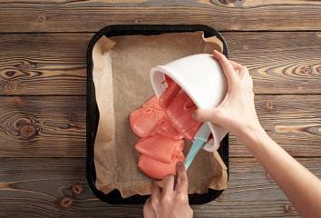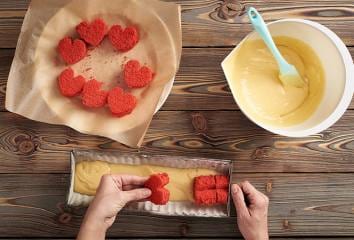Vyskládáme formu srdíčky pěkně vedle sebe a na střed.