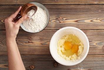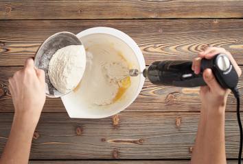 Přidáme vejce, mouku, prášek do pečiva a pořádně promícháme.