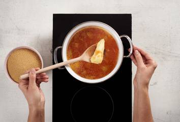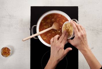 Vaříme asi hodinu, dokud se obsah nezredukuje na polovinu. Odstraníme bílou pěnu.