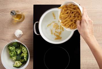 Uvaříme těstoviny v osolené vodě.