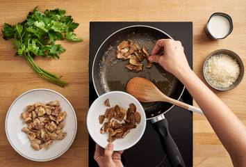 Scedíme vodu z hub a smažíme je asi 5 minut.