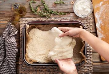 Vypracujte těsto a nechte ho odpočívat na teplém místě 45–60 minut nebo do té doby, než se zdvojnásobí.