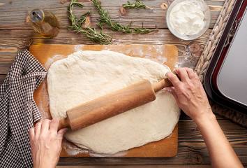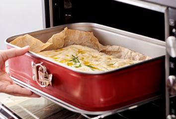 Pečte 20 minut, až je těsto dozlatova upečené. Po upečení můžete těsto opět jemně potřít olivovým olejem.