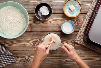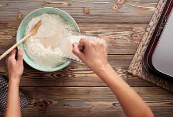 Smíchejte cukr s droždím v teplém mléce a nechte směs 10 minut odpočívat na teplém místě, než droždí začne kynout.