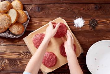 V míse smícháme maso a grilovací omáčku, přidáme sůl a podle chuti koření. Vytvarujeme 4 karbanátky.