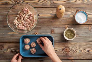 Ze směsi vytvoříme malé koule a dáme je do pekáče. Pečeme na 220 °C po dobu 20 minut.