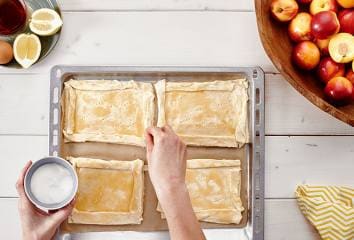 Nektarinky omyjeme a nakrájíme na tenké plátky.