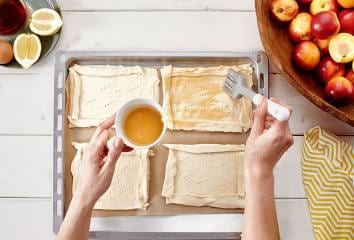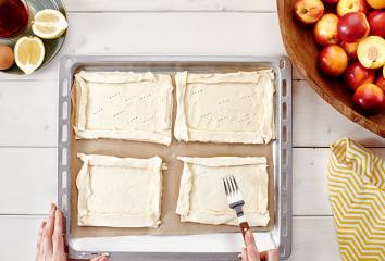 Do každého čtverce asi 1,5 cm od okraje nařízneme menší čtverec. Ten vidličkou zatlačíme dolů. Vytvoří se tak prostor na náplň, aby nevytekla.