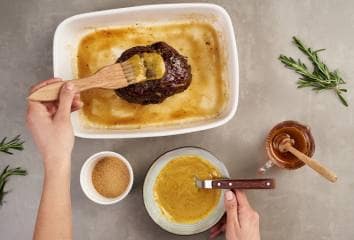 Potřeme šunku a pečeme dalších 30 minut, případně dokud se na šunce nevytvoří glazé.